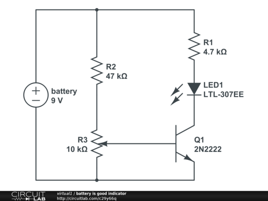 Green LED stays lit until battery voltage drops to the adjusted level. Transition between 1.5mA and 0.1mA on the LED is about 2v on the battery at 9 down to 7 volts. Current draw is 4-5mA.