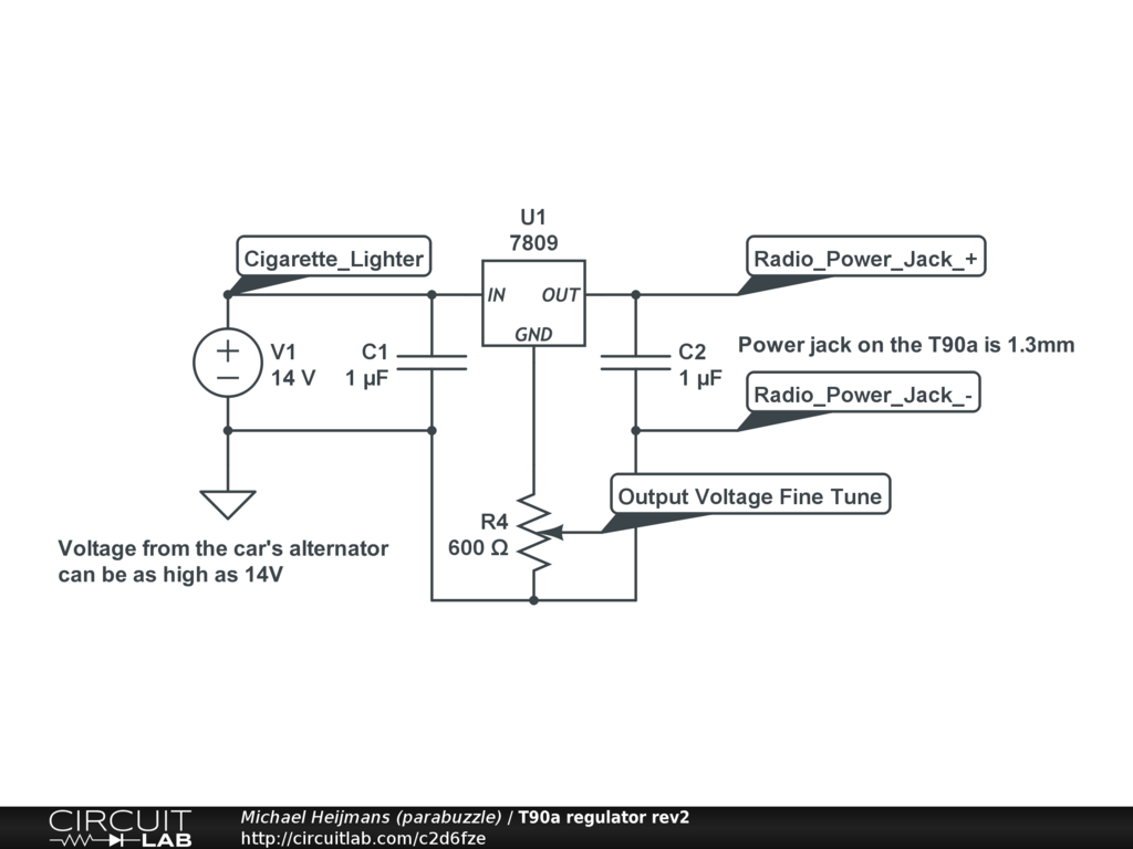 The Icom T90a runs on 5.5V - 11.5V. In order for the charger to work, you need to supply more than the battery provides which is 7.8V. So for a good DC charger, you will need 7.9V - 11.5V. This circuit is capable of providing that from a DC source of 10.8V up to 16V+ Which is within the spec of a car's battery and alternator.