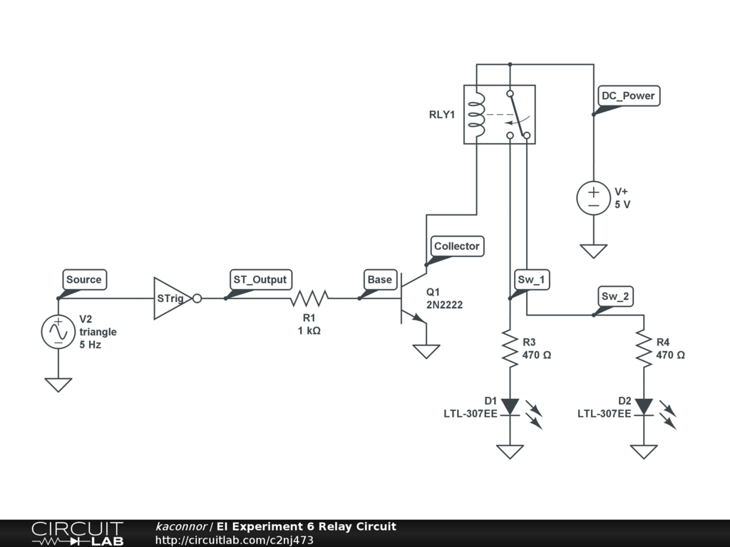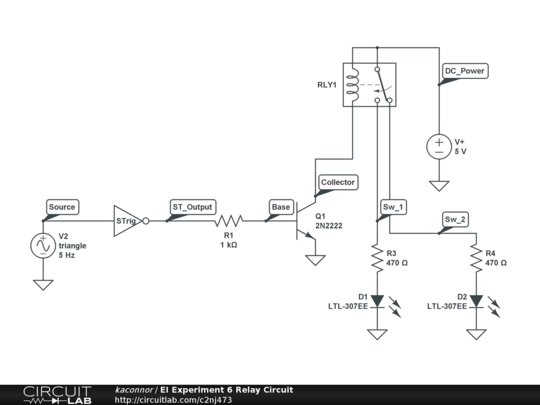 This is a simple relay circuit addressed in Experiment 6 for ENGR-4300, Electronic Instrumentation, at RPI
