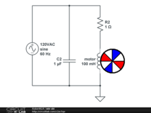 Simulates 120 vac induction motor "to some extent", (keep that in mind) at 30 and 60 Hz. I added a gif to represent motor. I was guessing at the motor capacitance and inductance. C2 is not a start capacitor but represents inter-winding capacitance and R2 is the DC winding resistance. Use Time Domain and sweep the power source frequency at 30 and 60 Hz. The lower frequency amperage is approximately twice the higher frequency's.