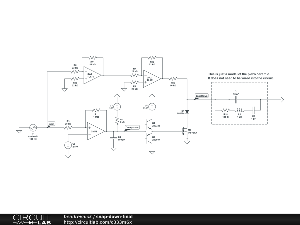 A fast piezo driver circuit using a simple MOSFET.