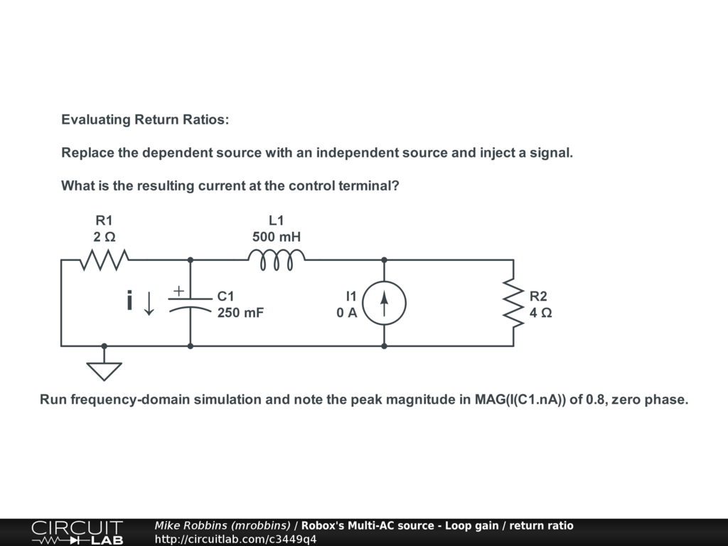 CircuitLab can calculate "return ratio" or "loop gain" to show when a dependent source can create an unstable system.