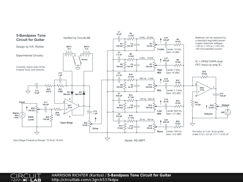 5-Bandpass Tone Circuit for Guitar.