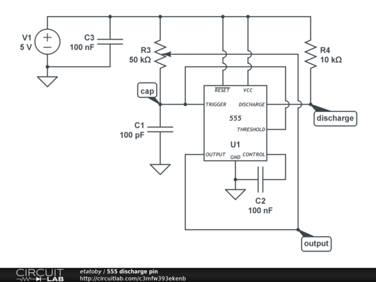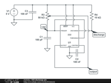 Something weird is going on with the discharge pin. Run time-domain simulation to see it.