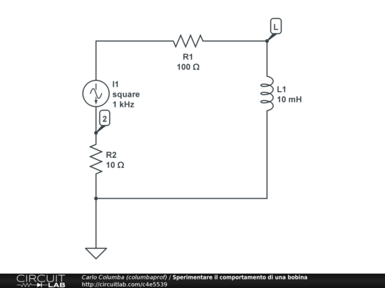 Circuito utile alla sperimentazione del comportamento della bobina
