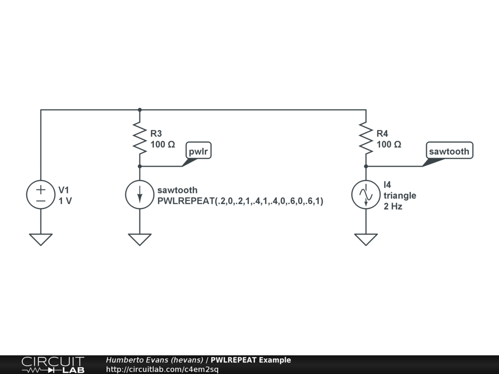 Example of PWLREPEAT to create a pulse train in a current source.