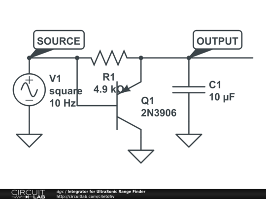 This is an integrator circuit I'm setting up for doing a DtoA conversion for an HC-SR04 ultrasonic range finder. It would be better to have the pull down be a JFET but the PNP transistors were more available at my local retailers and I was impatient. I hope to use this in place of the more expensive MaxSonar brand devices that are officially supported by the DIYDrones Ardupilot project.