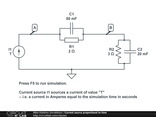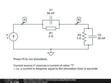 A current source can source a current proportional to the current simulation time in transient analysis mode.
