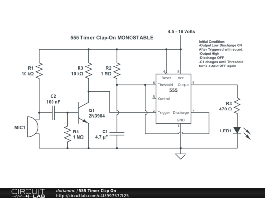 Output goes high with a clap or loud noise.