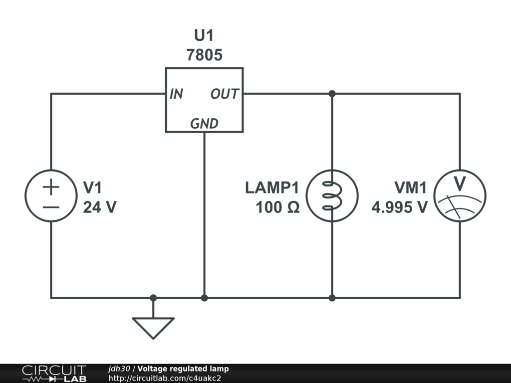 Using a 7805 to convert 24V DC into 5V DC.