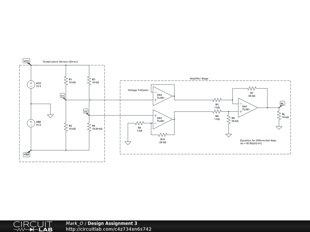 A design for an amplifier for a temperature sensor.