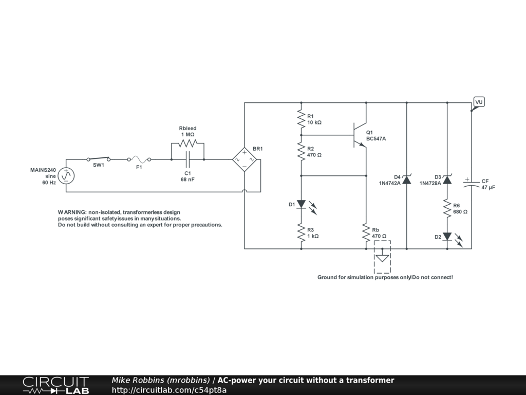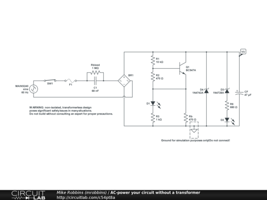 WARNING: non-isolated, transformerless design poses significant safety issues in many situations. Do not build without consulting an expert for proper precautions. See the comments on the EDN article for more details and suggestions from many commenters.
