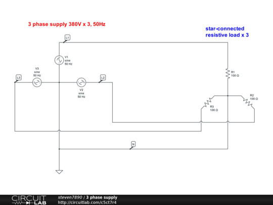 In this circuit, I model a 3-phase power supply by 3 signal sources connected in "star" manner. The 1st signal source is set to 0 degree phase shift. The 2nd and the 3rd signal source are set to 120 and 240 degree phase shift respectively. The loads are resistive and balanced, and connected as "star" too. When I made a simulation, to my surprise, the phase voltage and the line voltage waveform are not in phase...Why ? Or did I make any mistake ? Thanks in advance for your help.