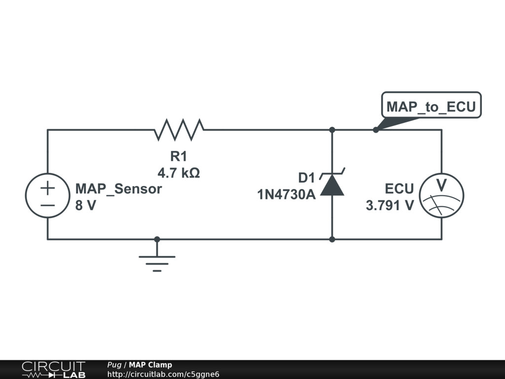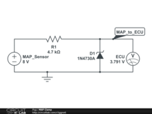 Restrict output voltages on a manifold absolute pressure sensor to be between 0V and 3.8V using a resistor and a zener diode.