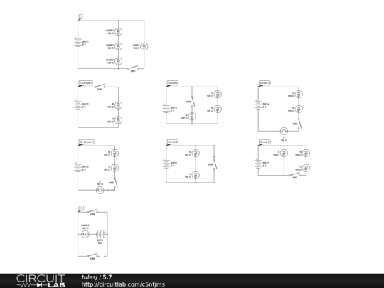 Good job. In light of the colored markers method though you should try to make some corrections. For 9 Circuit 2; bulb C is not hooked up correctly so it is not part of the circuit. Fro 9 Circuit 3: bulb B is not hooked up correctly so it is not part of the circuit. For 10 Circuit 1, bulb c is not going to have electricity flowing through the filament so it is essentially not part of the circuit. Electricity will always take the shortest non inhibited path. Bulb C as hooked would be bypassed. For 10 Circuit 2 bulbs A and B are in parallel and the switch only controls A. For 10 Circuit 3: all bulbs are in parallel |