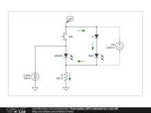 In this case, this means that if we connect a (green) LED with a lower forward voltage to a lit (red) LED with a higher forward voltage, it will turn it off. And since red LEDs usually have a lower forward voltage than green ones, we can artificially increase it by connecting an ordinary silicon diode D in series (a trick widely used in TTL gates). Let's consider the circuit operation.