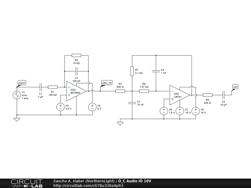 Here's Pauls best initial guess for converting to ±10V signal range for both input and output
