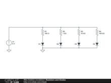 Four identical diodes with different series resistors. See how the current and voltage varies between the four.