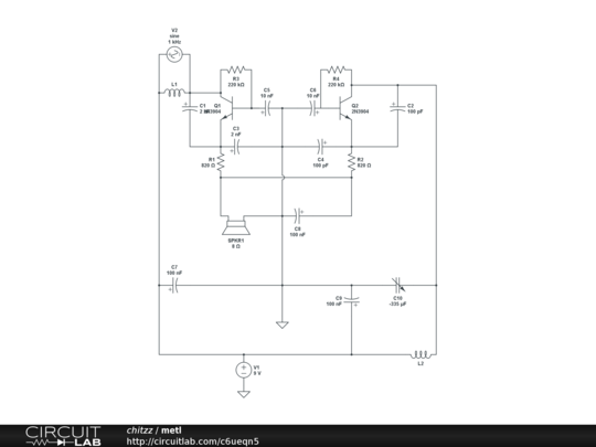 The circuit may be set up to operate on any frequency between 50,000 Hz to over 1 MHz by selecting the tank circuit components. Just about any good general-purpose NPN transistor suitable for low RF applications will work just fine. The search loop can be as small as a dime or three feet or larger in diameter. A small loop works best for small objects buried shallow and a large loop works best for large objects buried at greater depths. The two oscillator circuits should be separated and shielded from each other to reduce frequency pulling between the two. A really well constructed BFO detector will be able to operate with a difference of less than 100 Hz between the two oscillators. The lower the audio output tone the easier it is for the ear to tell a small frequency shift. The detector's maximum sensitivity is obtained when the two oscillators are operating just a few cycles apart. Believe me, this is not an easy task to accomplish, but one well worth the effort. Here's how the simple BFO detector operates. Transistor Q1 along with its associated components make up a Colpitts oscillator circuit with the search loop, C1 and C3 forming its tuned circuit. Transistor Q2 with its associated components make up another Colpitts oscillator circuit with L2, C2, and C4. forming the tuned circuit. The emitters of Ql and Q2 are coupled together through R1, R2, and the low-impedance headphones. This circuit arrangement functions as a simple RF mixer circuit. The audio frequencies are fed to the headphones, and the RF frequencies are bypassed to ground through C8.