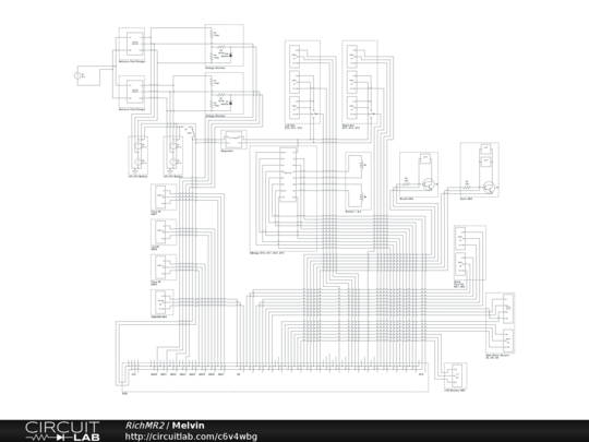 Schematic for wiring of Melvin (Hearoid) using EZB micro controller and various sensor circuits.