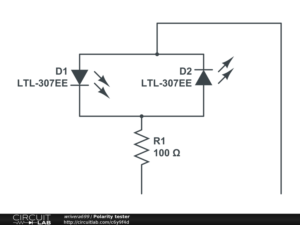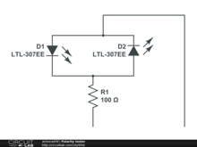 This is a schematic for a simple polarity tester. Depending on which end of a battery you touch with the probe that has the resistance a LED will glow.