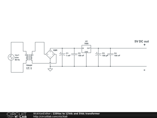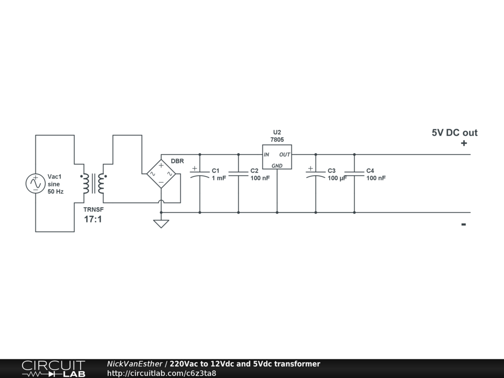 230V AC input to 12V DC and 5V DC outputs.