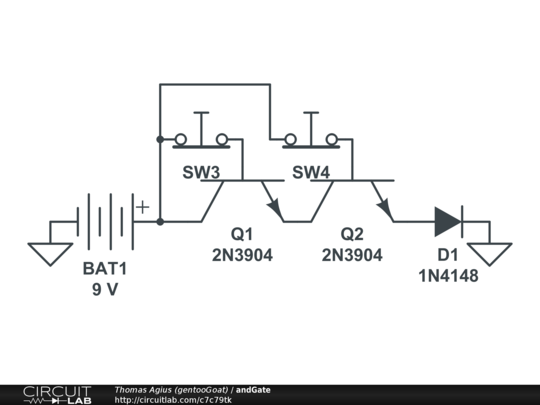 In my quest to test my understanding of electronic logic, I am designing all the logic gates. Here is my first; the and-gate