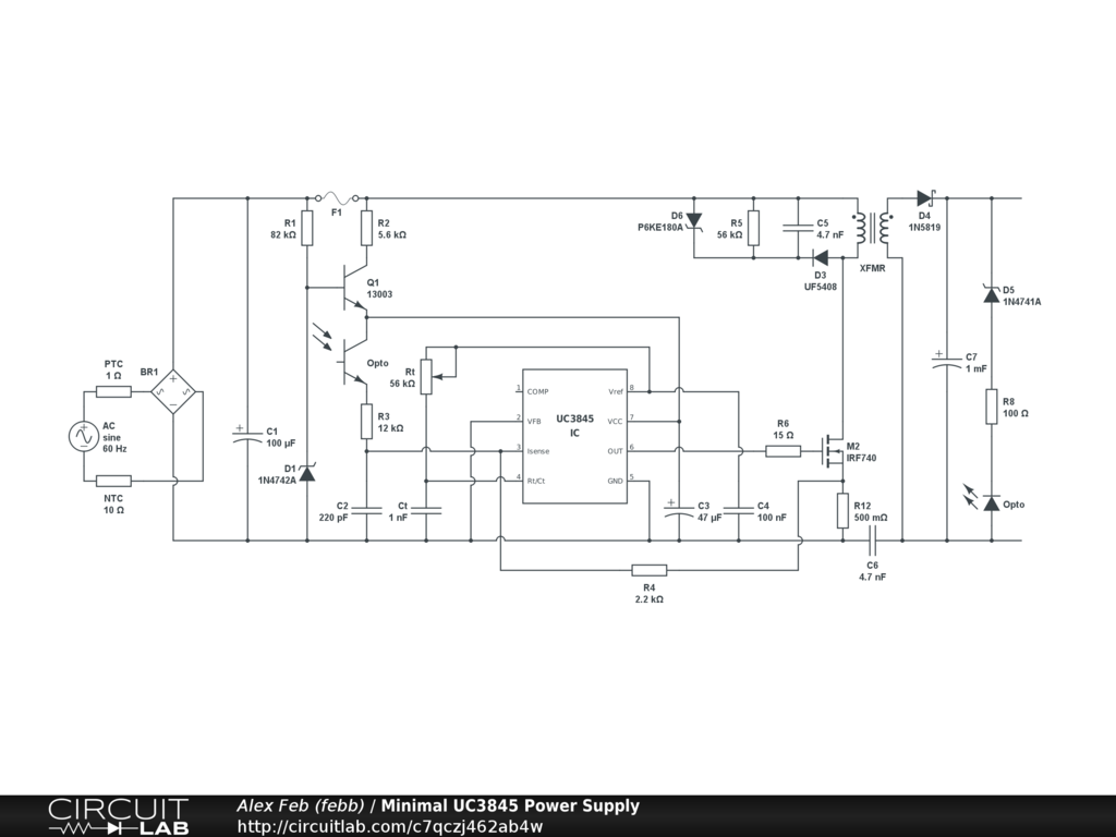 Try to design minimum components UC3845 switch mode power supply