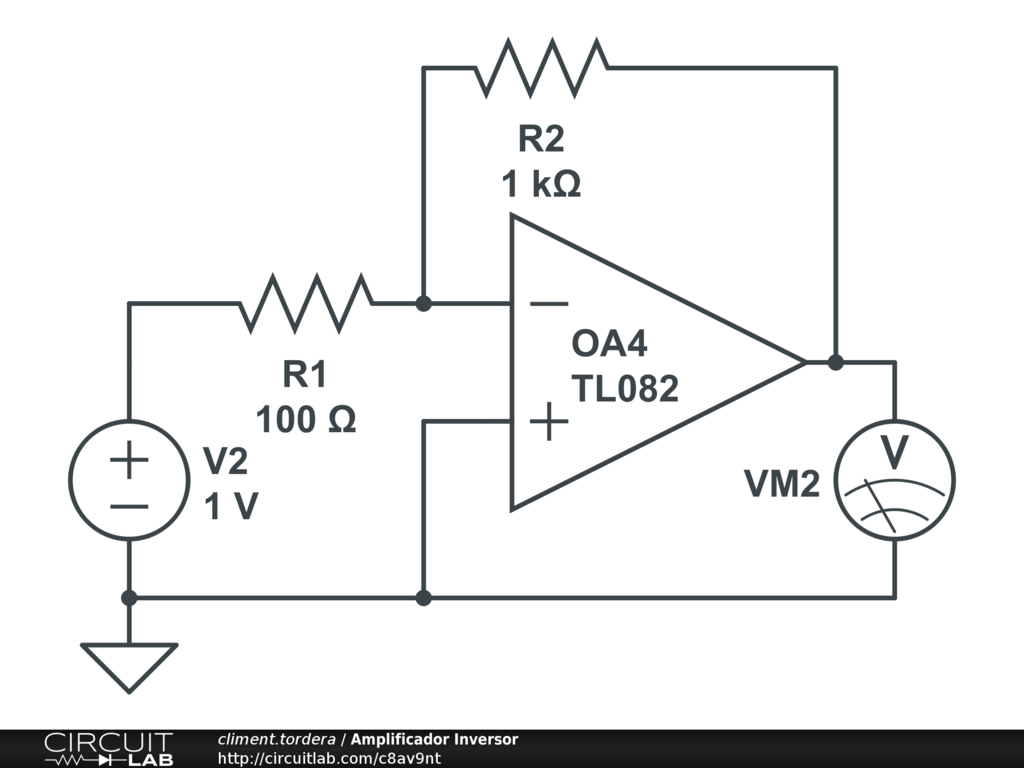 Amplificador Inversor. Vout = - (R2/R1)*Vin