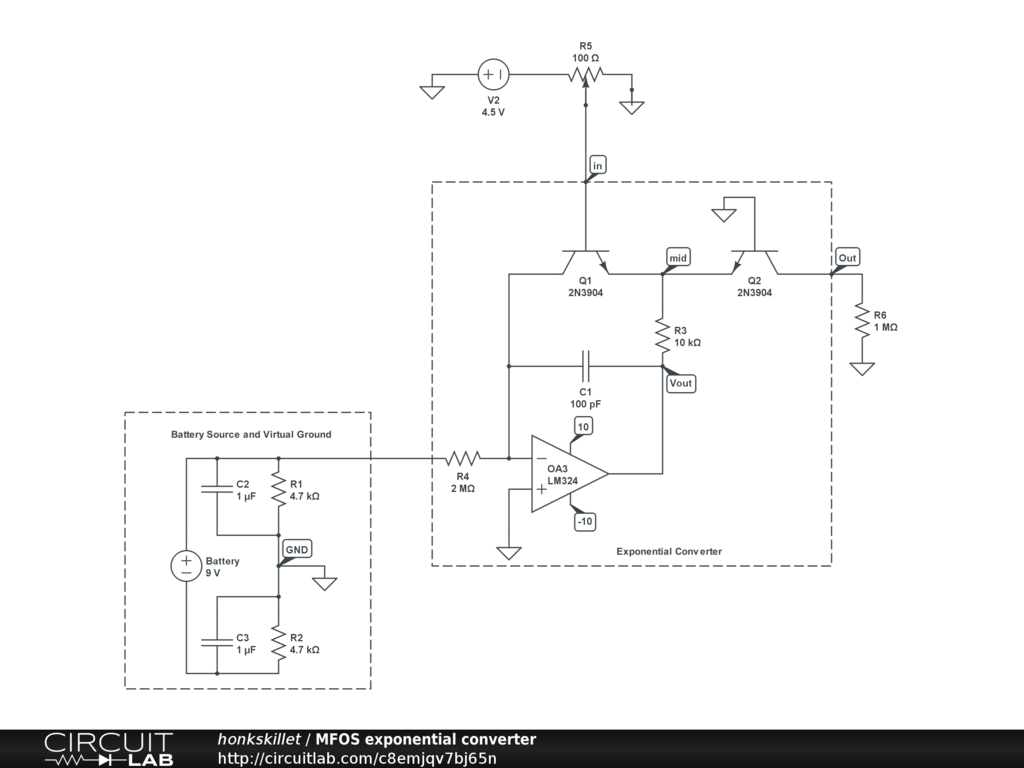 Schematic of exponential converter of MFOS VCO.