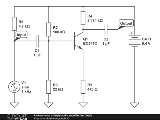 An electret microphone amplifier (based on example provided on this site) for Dottie to listen to the environment.