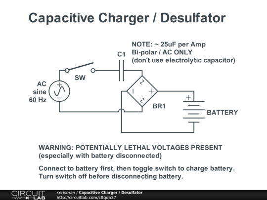 More information here: http://www.johnsavesenergy.com/CapacitiveBatteryCharger.html