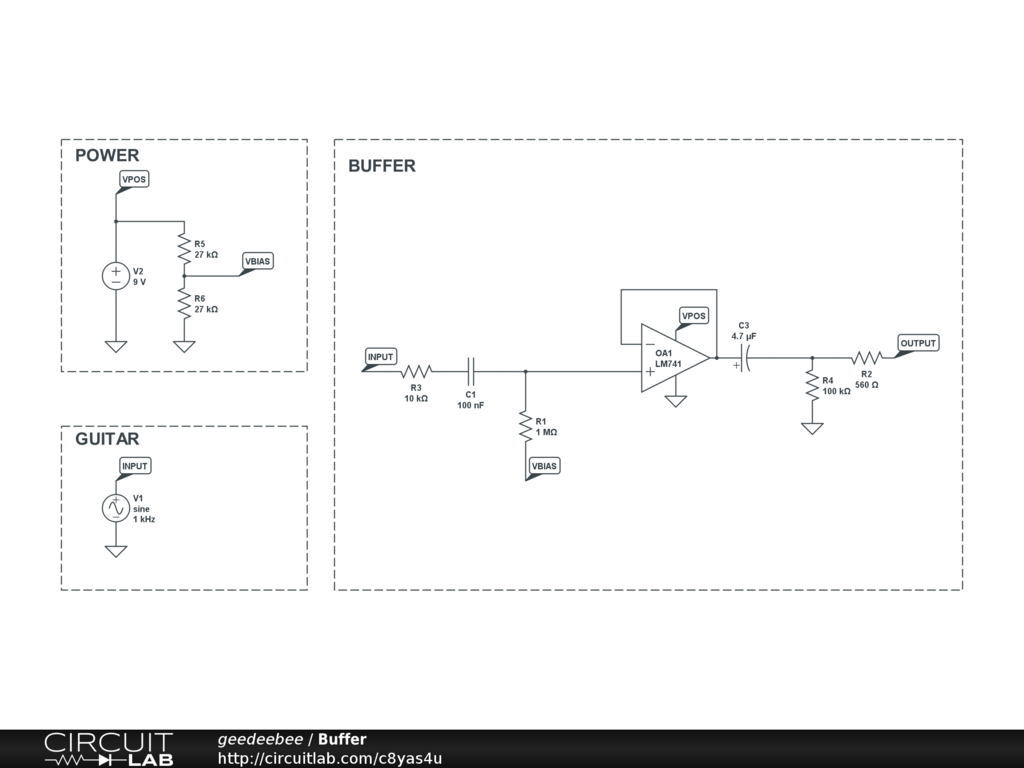 A very simple buffer circuit, as used in the famous Klon Centaur.