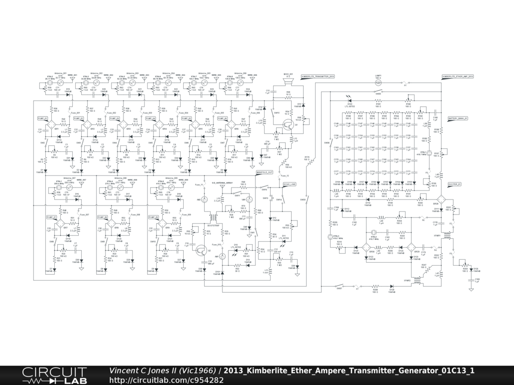 This circuit is intended to reduce the cost of fossil fuels, by reducing the demand for them. It does so by allowing free emf radiation into the picture. Free emf radiation powers the receiver antenna array, with drainage current going on to power a 9-Dimensional transmitter antenna array. Current goes to "ground," and voltage goes out of the 9-Dimensional transmitter antenna array. For 9-Dimensional transmitter antenna array specs, be prepared to spend about $1,000 on supplies.