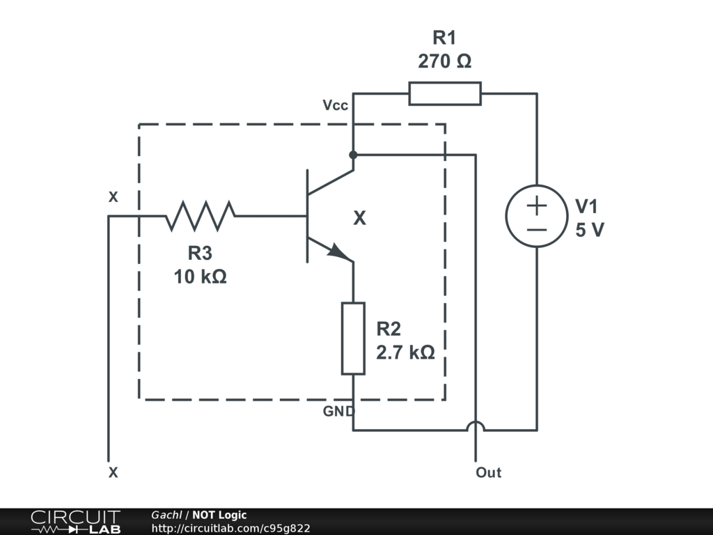 Basic boolean NOT logic gate made with transistors
