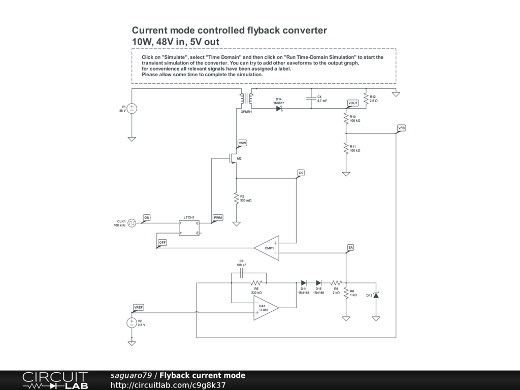 Flyback converter working in peak current control mode.