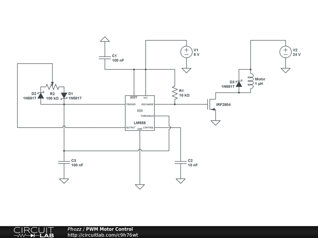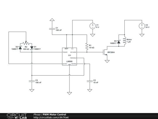PWM Circuit for controlling the speed of DC motors using a 555.