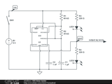 This is supposed to test 555 timers. I can't get the simulation to work, so i don't know if it works yet.