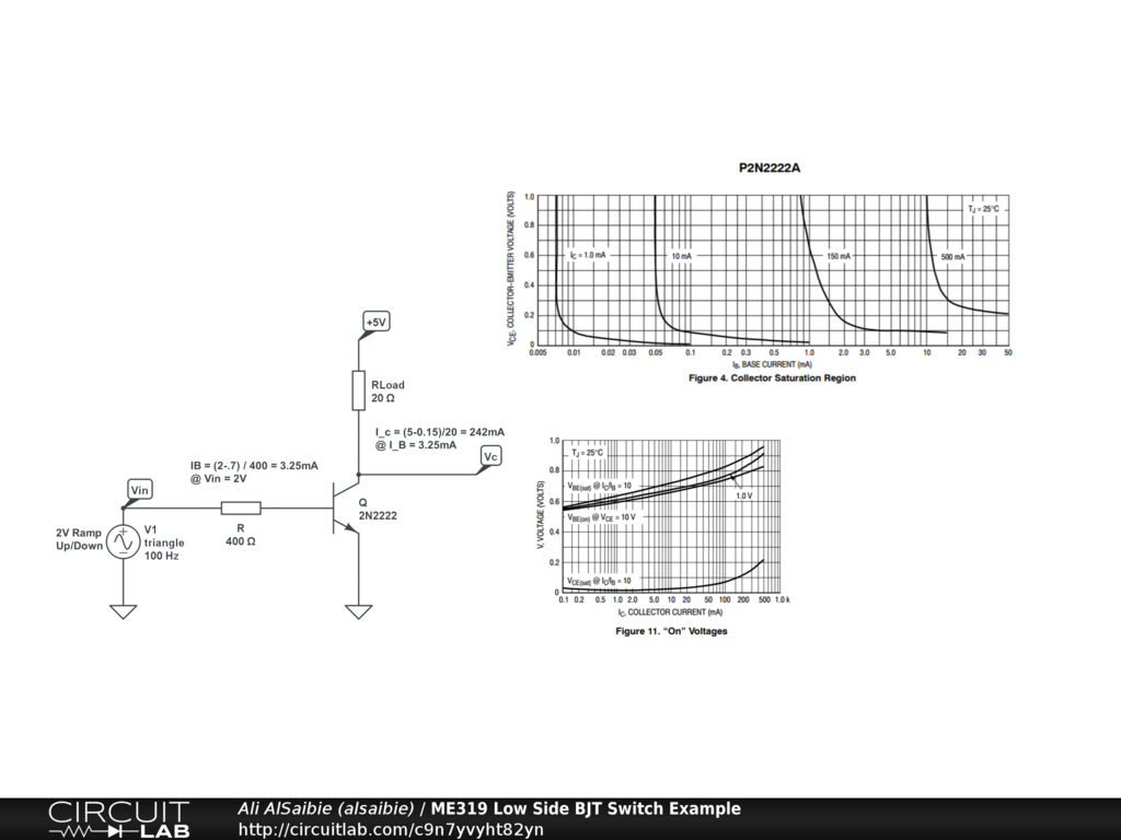 BJT NPN Low Side Switch Example using 2N2222