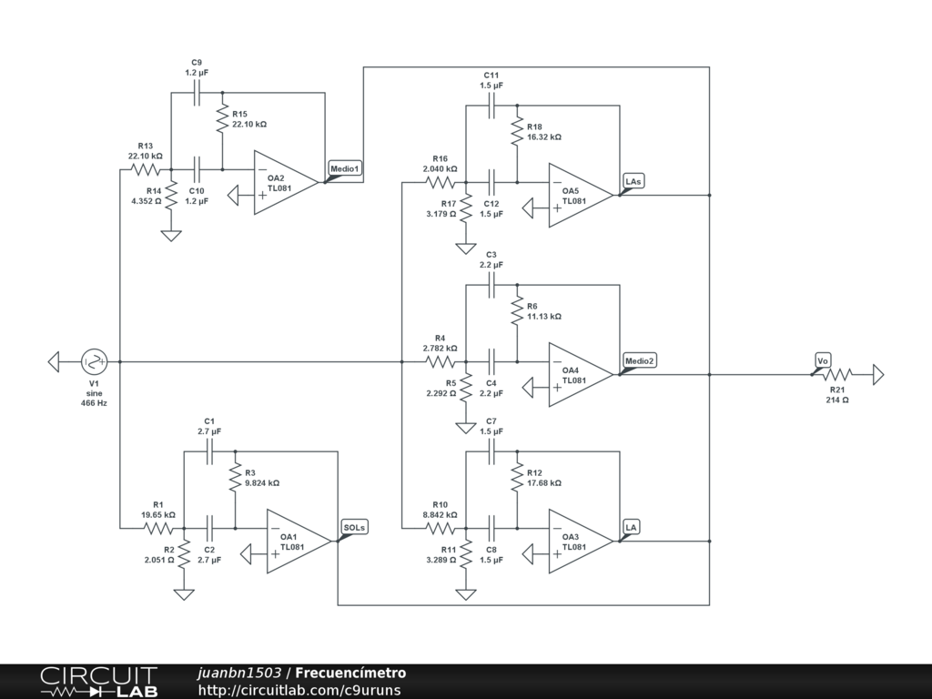 Frecuencímetro diseñado para funcionar en un espectro de 400 a 480 Hz