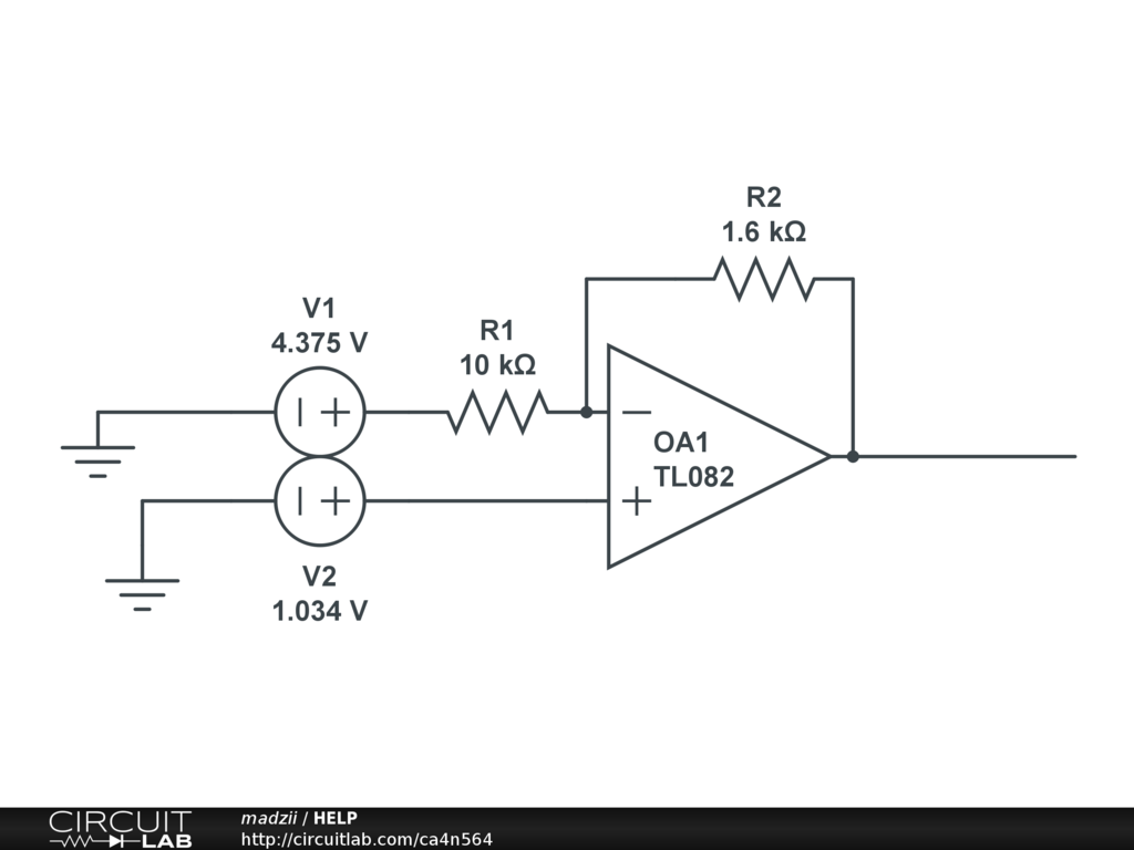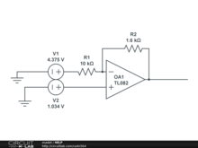 Hi, This circuit is an inverter. Normally the inverter has vo=(-R2/R1)*vi However this circuit must take into account V2. After basic calculations the vo should be around 0,499V. First you calculate I1=(V1-V2)/R1, then I2=(V2-Vo)/R2. Then you make I1=I2 and extract Vo. |
