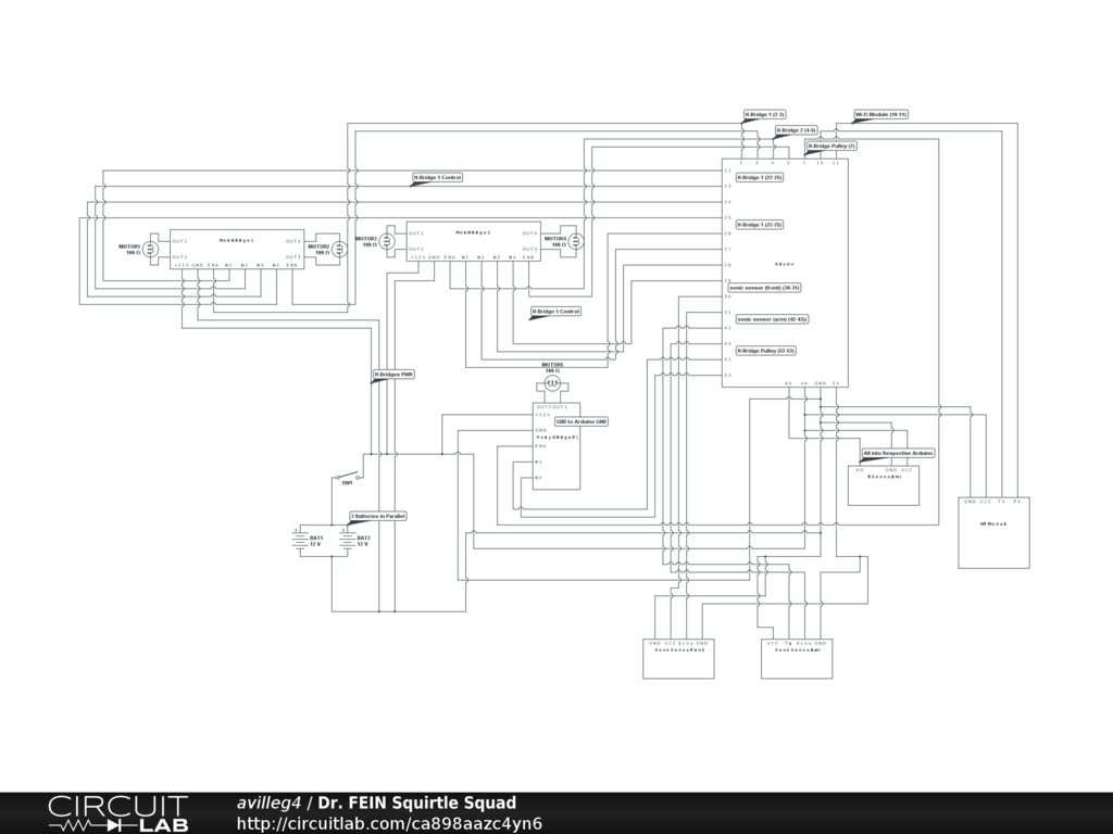 Circuit diagram for the Squirtle Squad fire extinguishing OTV. My first circuit diagram to this extent.