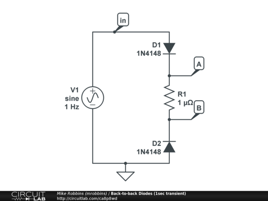Proper simulator convergence in back-to-back 1N4148 diode transient simulation. (with longer time duration transient simulation)