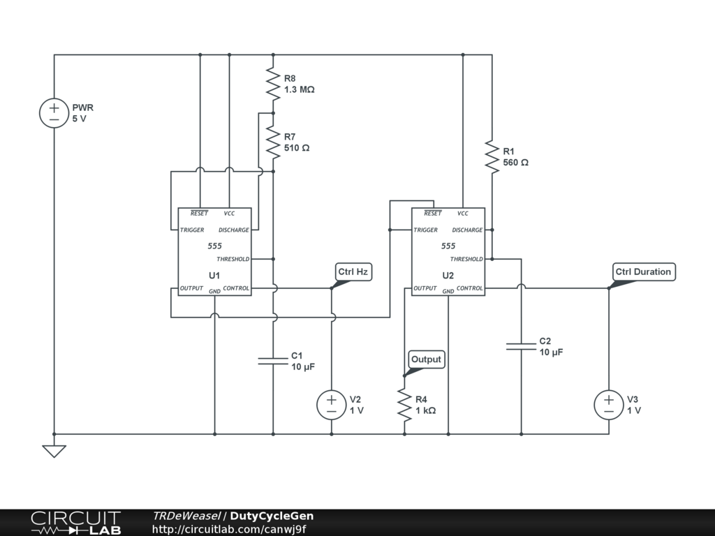 This is a variable frequency square wave generator with varible duty cycle.