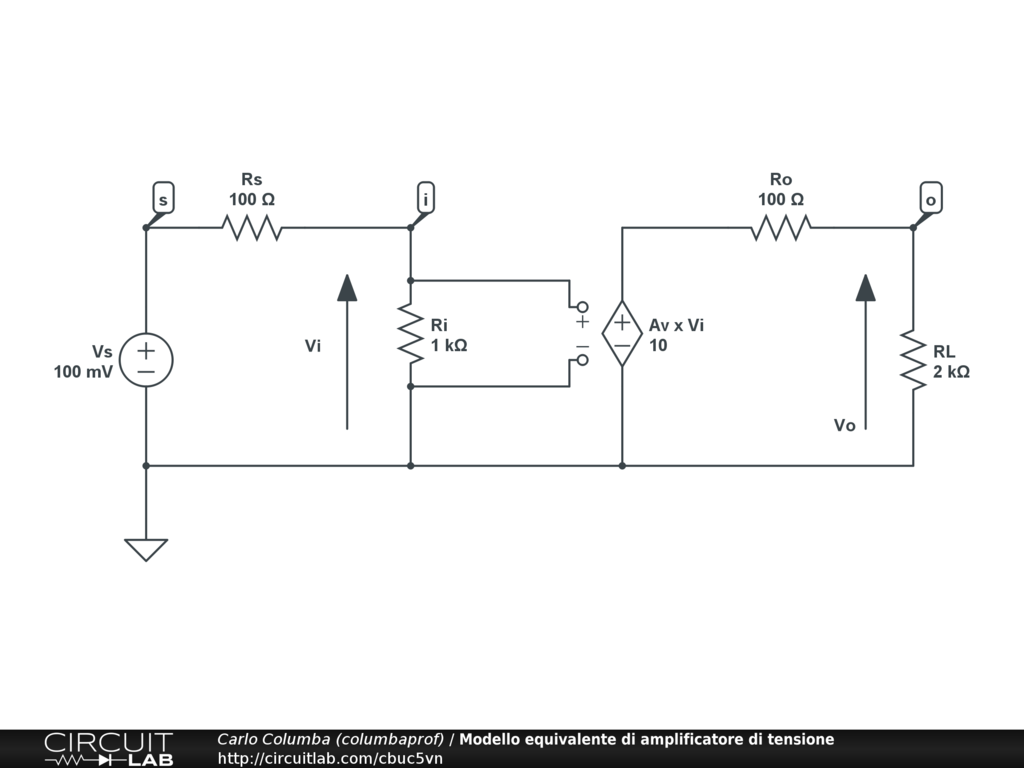 Il circuito รจ stato registrato con una simulazione del tipo DC Sweep in modo da facilitare l'analisi del comportamento al variare dei valori della resistenza di ingresso e della resistenza di carico.