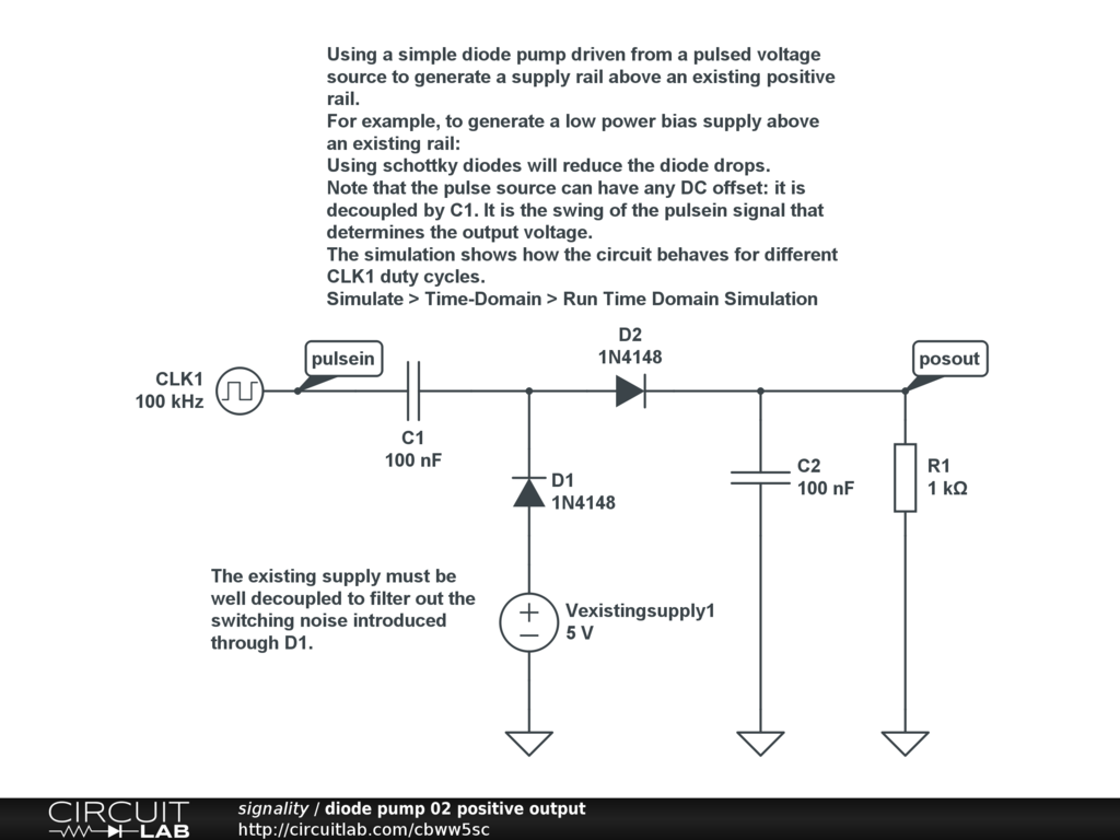 Using a simple diode pump driven from a pulsed voltage source to generate a supply rail above an existing positive rail.