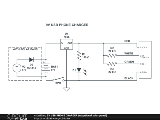 A cheap yet reliable usb charger you can take anywhere and use without a wall socket. All you need is either sunlight or a 9v battery.
