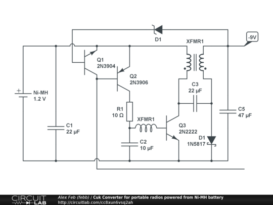 Efficient low EMI DC-DC converter Cuk topology to power portable radios from Ni-MH battery