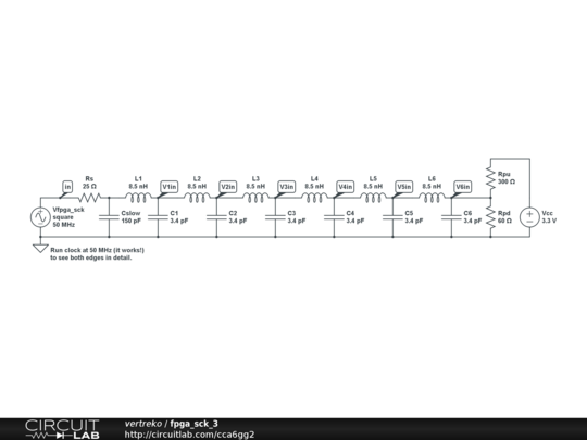 FPGA SCK driving terminated transmission line.