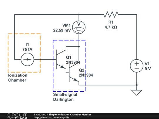 Simple circuit for monitoring an ionization chamber.